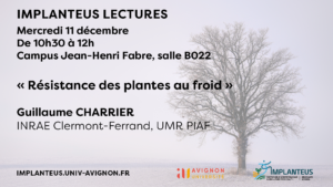 - [Implanteus Lectures] Mercredi 11 décembre 2024 : « Résistance des plantes au froid » par Guillaume CHARRIER (INRAE, UMR PIAF)